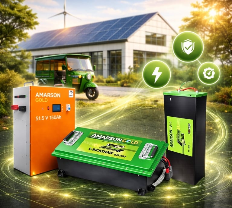 Amarson Gold – Lithium Technology delivers advanced LiFePO4 battery solutions designed for reliability, performance, and long-term efficiency across inverter, e-rickshaw, and industrial applications.